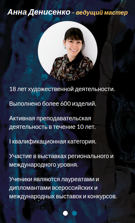 Художник декоративно-прикладного искусства, дефектолог и преподаватель по художественной деятельности Анна Денисенко обратилась к нам в студию с просьбой улучшить отображение её существующего одностраничного сайта на маленьких устройствах: планшетах и сотовых телефонах.