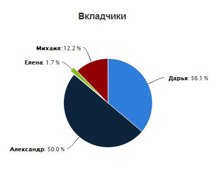 Если Вы копите деньги с кем-нибудь (например, с другом или женой), то диаграмма вкладчиков подскажет какую долю вложений произвёл каждый вкладчик.