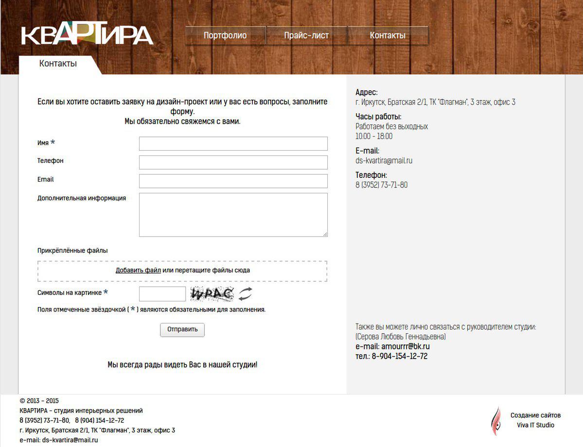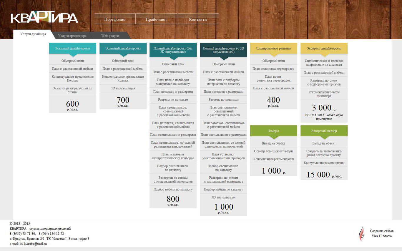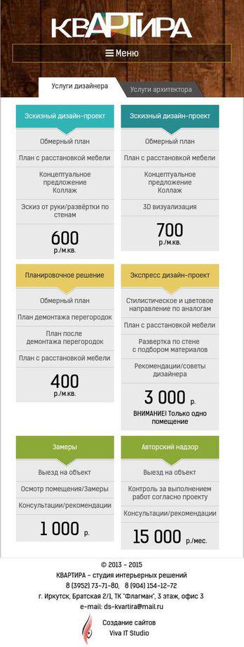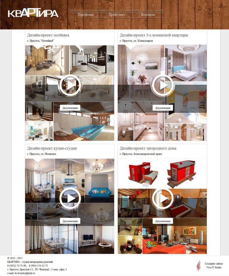 Для нашего партнёра-студии интерьерных решений "Квартира" разработан сайт, который официально представляет фирму в сети интернет. На этом сайте можно ознакомится с улугами и посмотреть их работы.