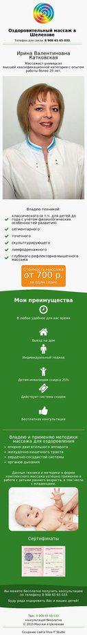 Представляем вашему вниманию проект "Студия массажа "Ирины Катковской". Ирина профессионально занимается данным видом деятельности уже более 25 лет, используя в своей работе различные техники массажа. А её внутренняя энергия может положительно зарядить человека на целый день!