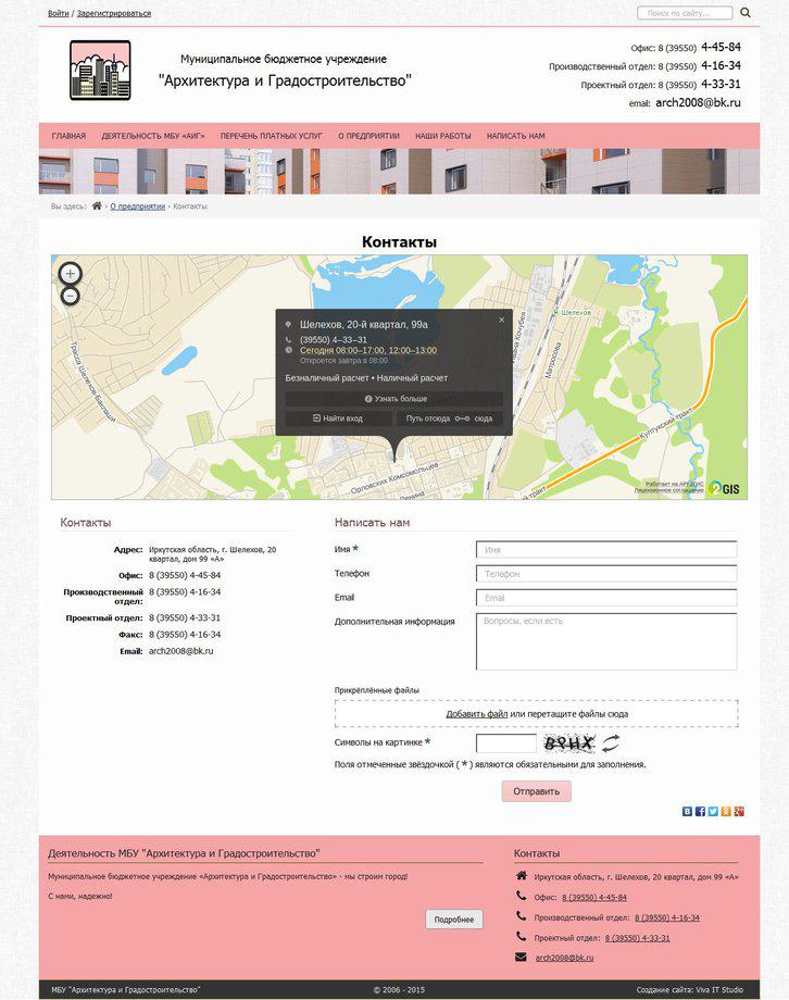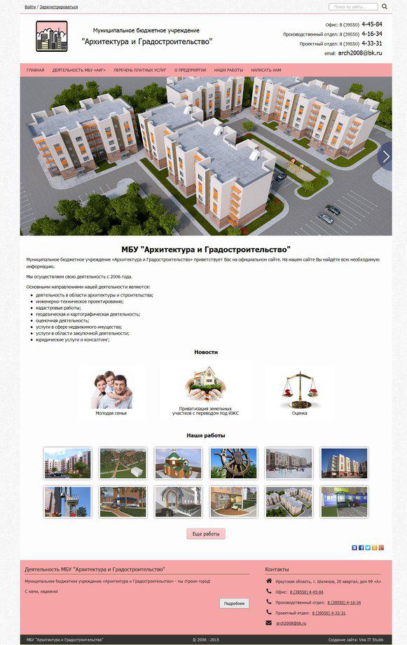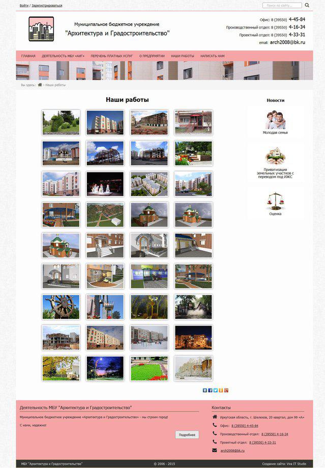 Разработанный сайт является официальным представительством в сети интернет муниципального бюджетного учреждения "Архитектура и Градостроительство" города Шелехова.