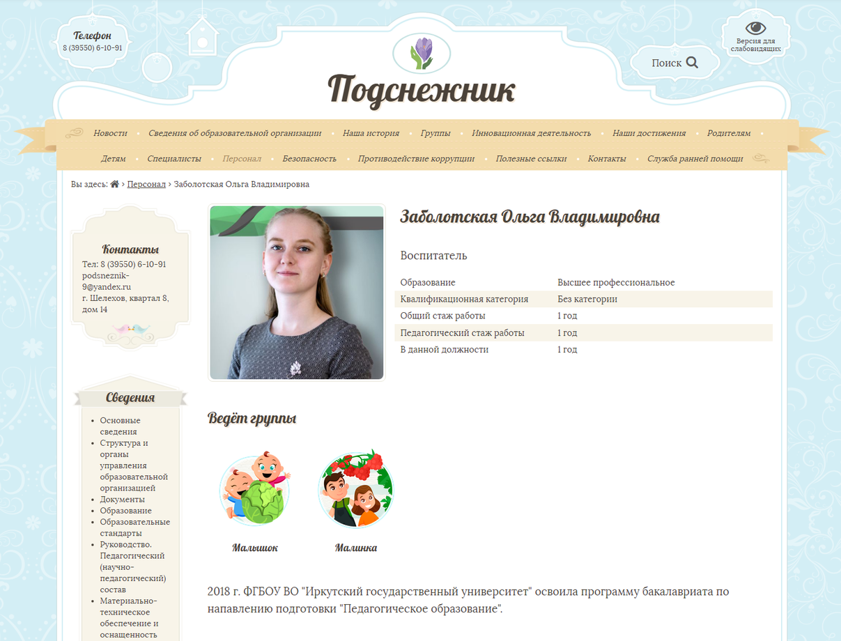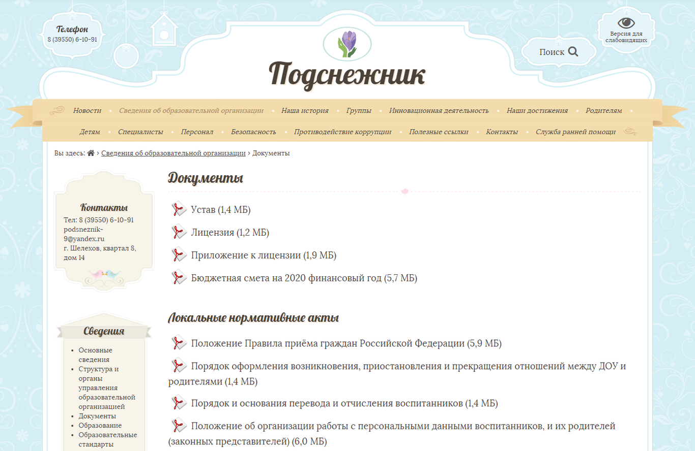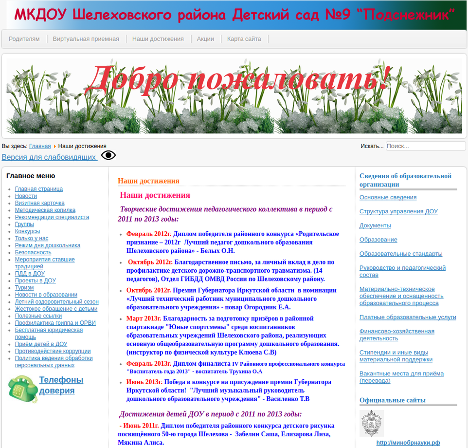 Мы представляем вам сайт детского сада "Подснежник", который ранее уже был разработан, но имел не только весьма устаревший внешний вид, но и немного запутанную и дублирующую структуру сайта с лишними блоками информации.