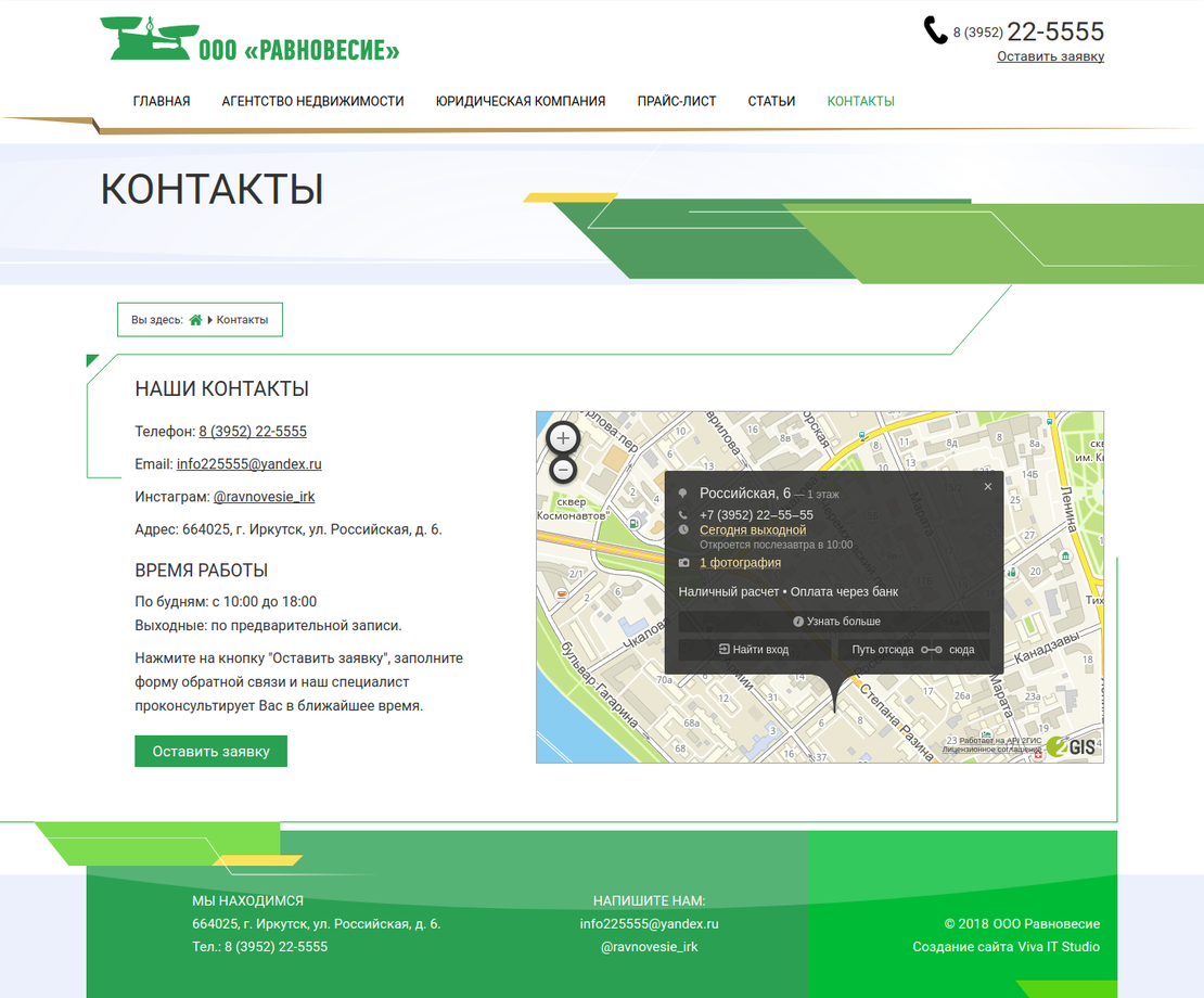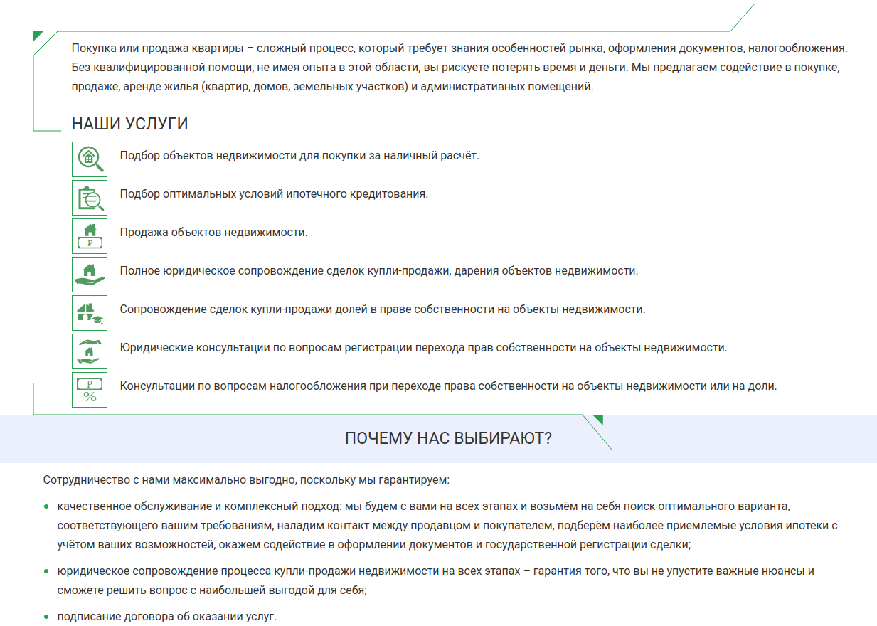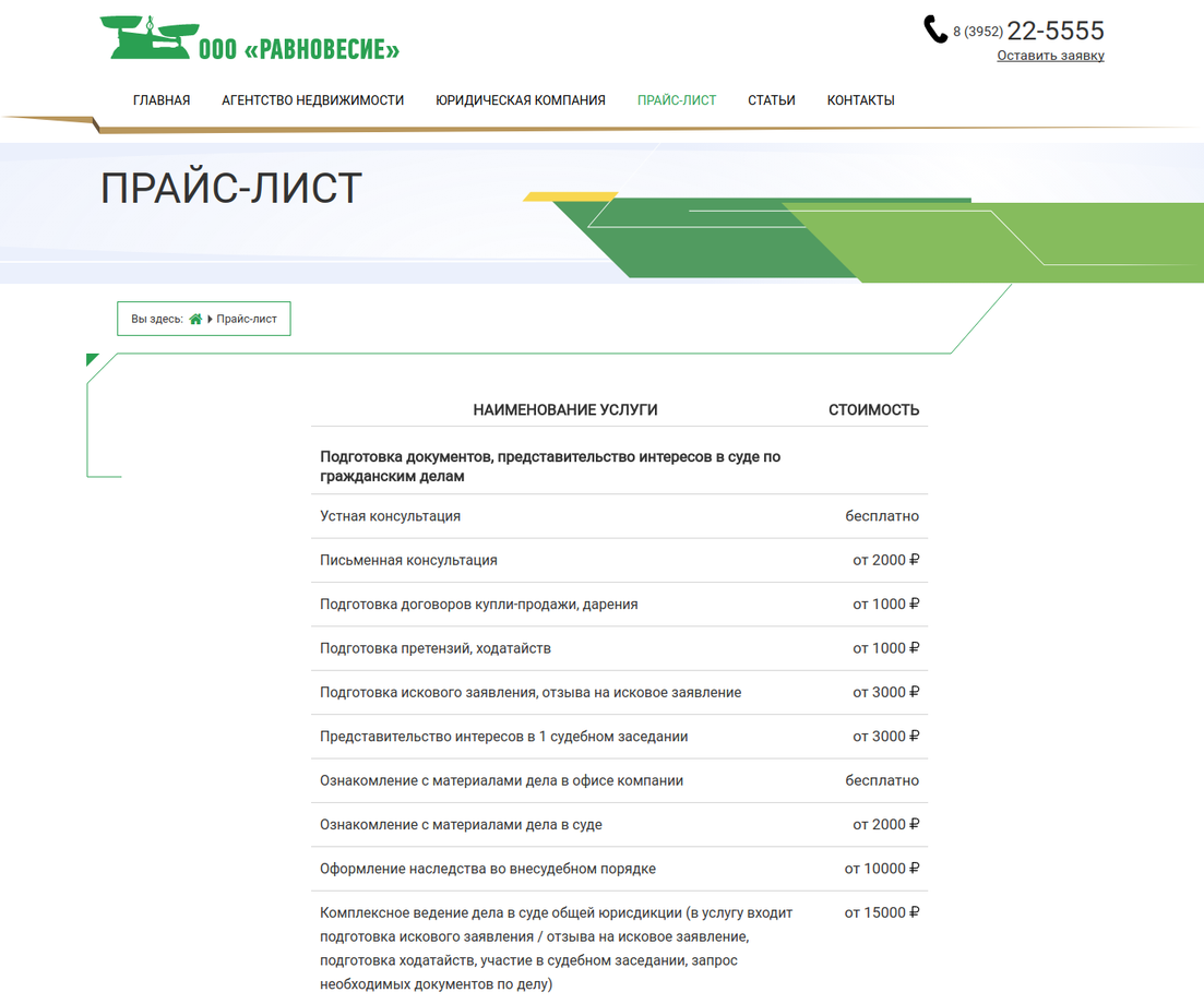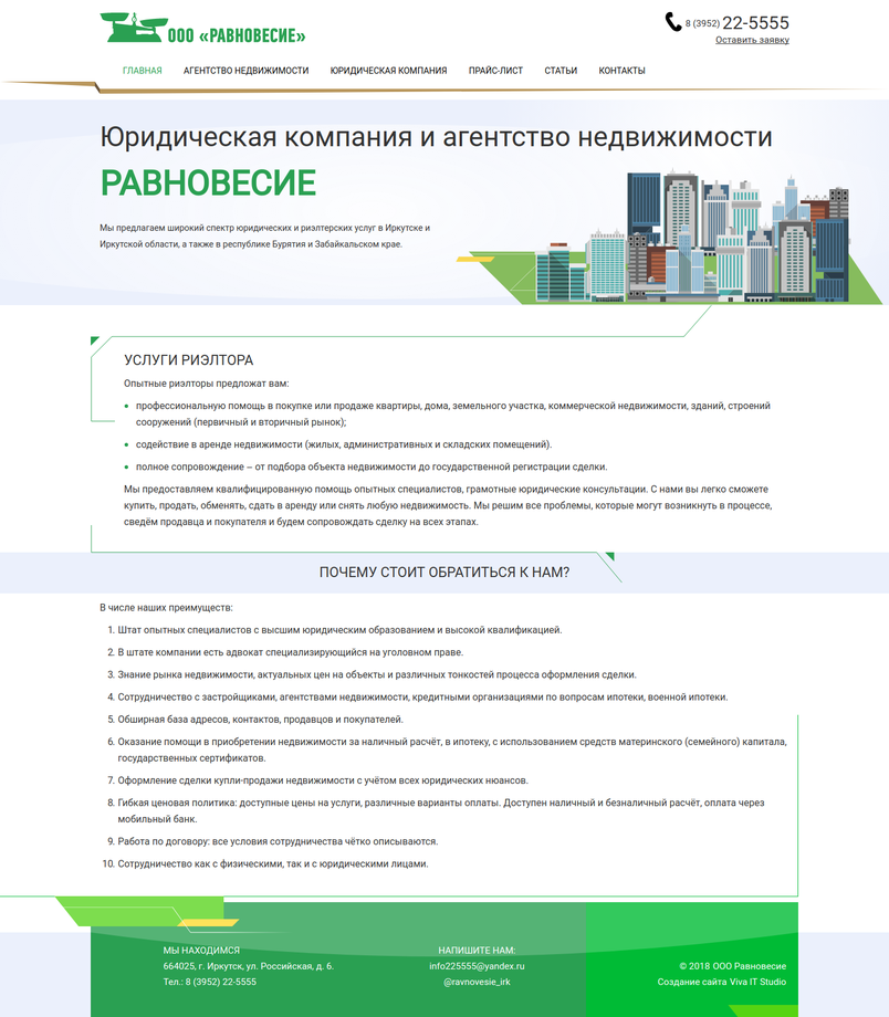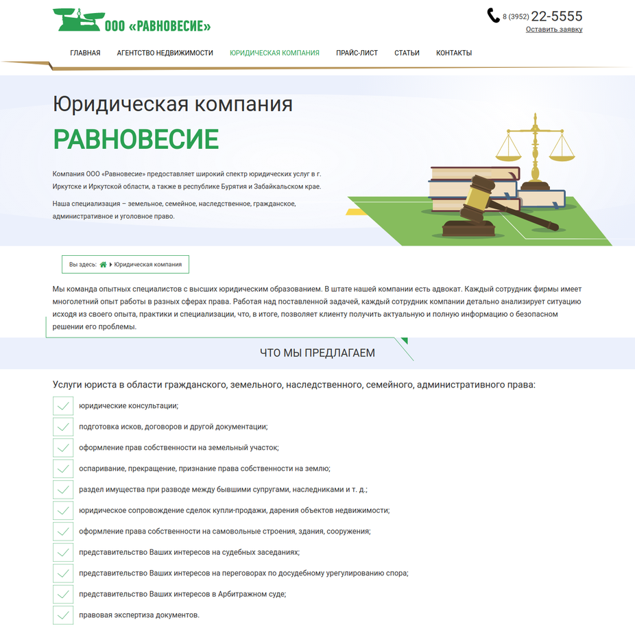 Рады представить вам созданный сайт для компании, оказывающей юридические и риэлторские услуги в городе Иркутске.