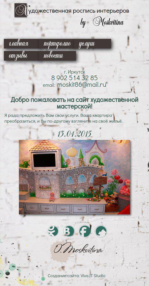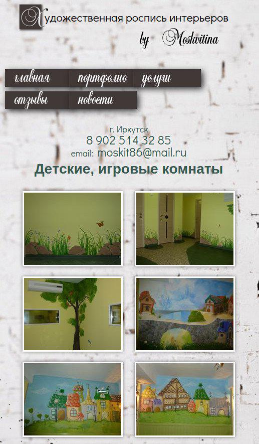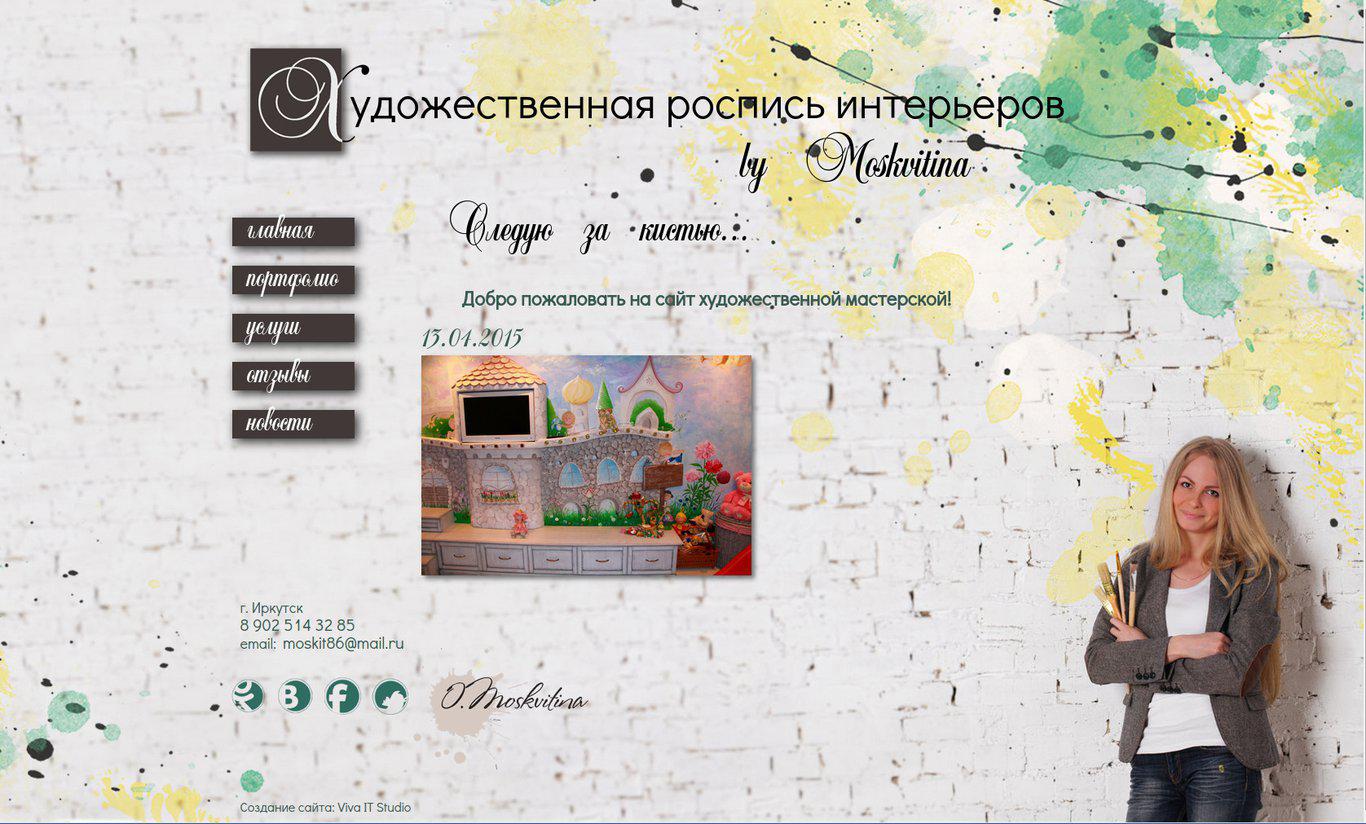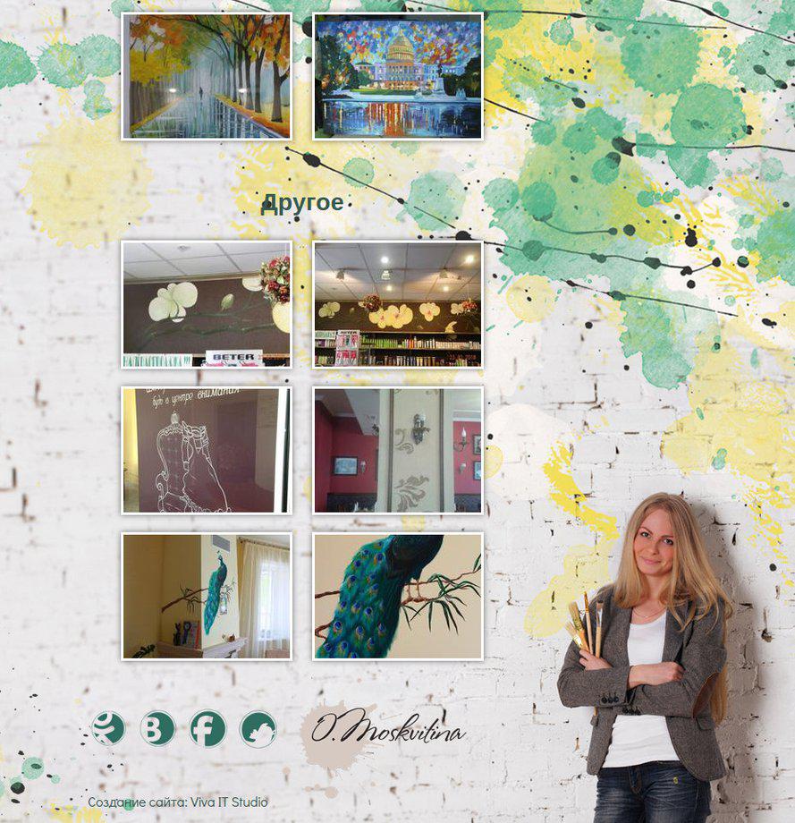 Персональный сайт Москвитиной Олеси, архитектора-художника. Она занимается росписью стен, рисует картины на заказ, выполняет различные художественные работы.