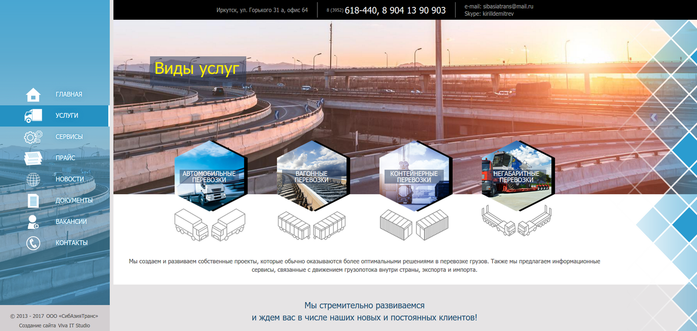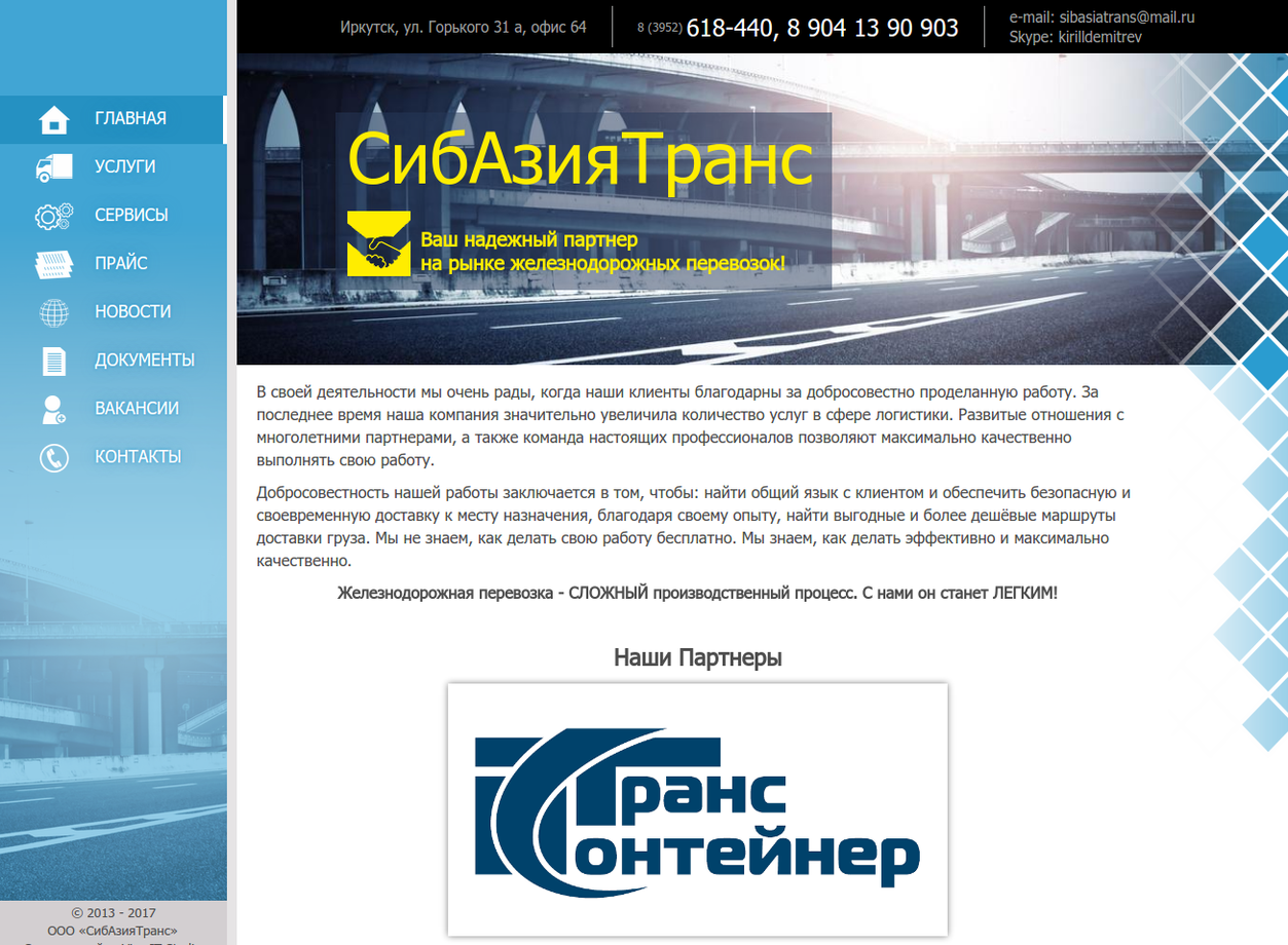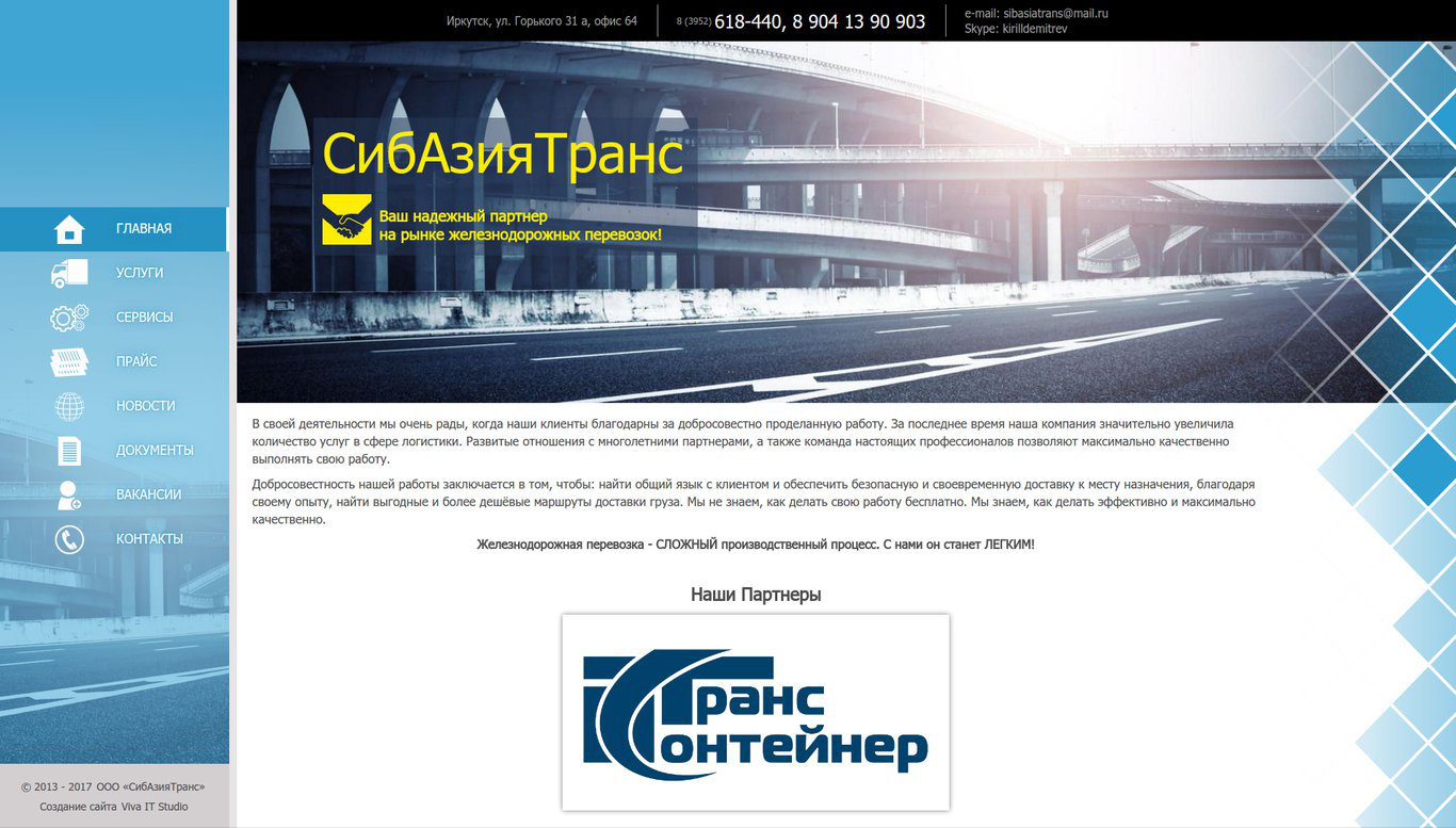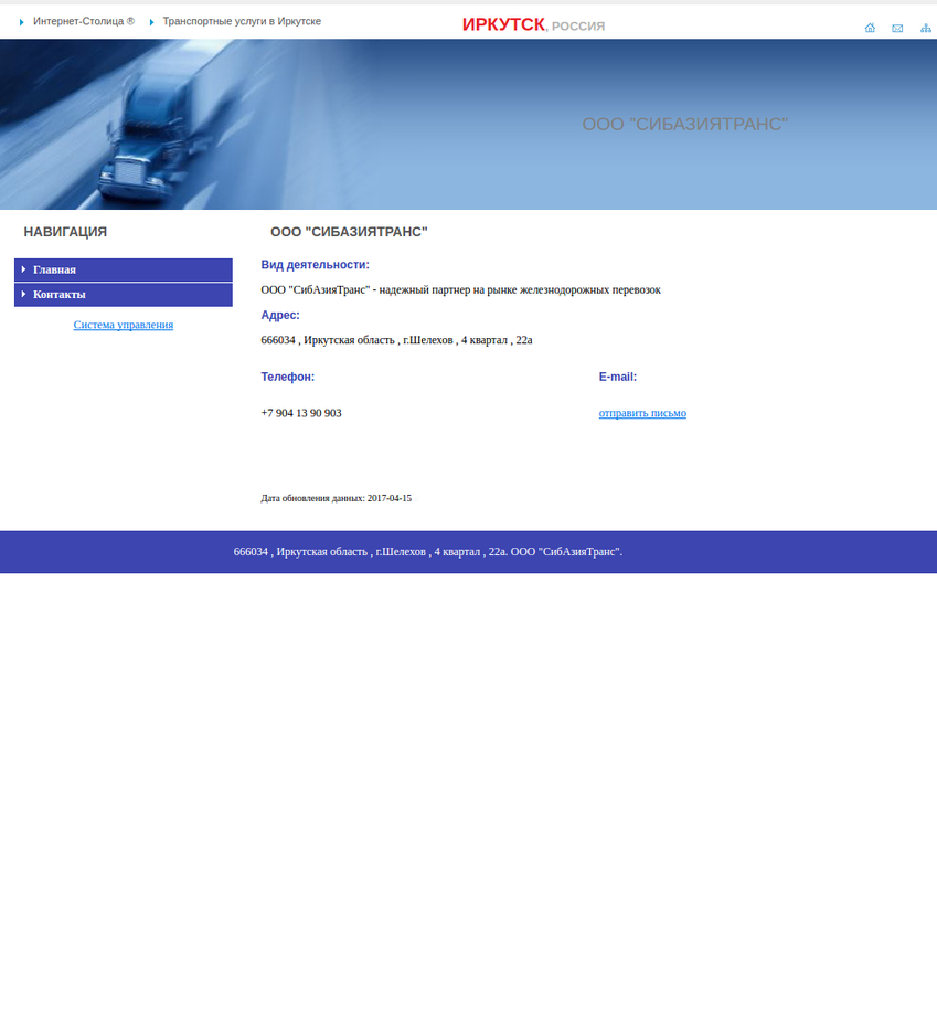 Молодая, динамично развивающаяся компания СибАзияТранс, занимающаяся автомобильными, контейнерными, вагонными и негабаритными перевозками, обратилась в нашу студию с заказом на обновление своего сайта. Ранее он был сделан на бесплатном движке и в нем нельзя было отключить рекламу этого самого движка. Сайт содержал пару страниц и минимальное количество информации о фирме СибАзияТранс.