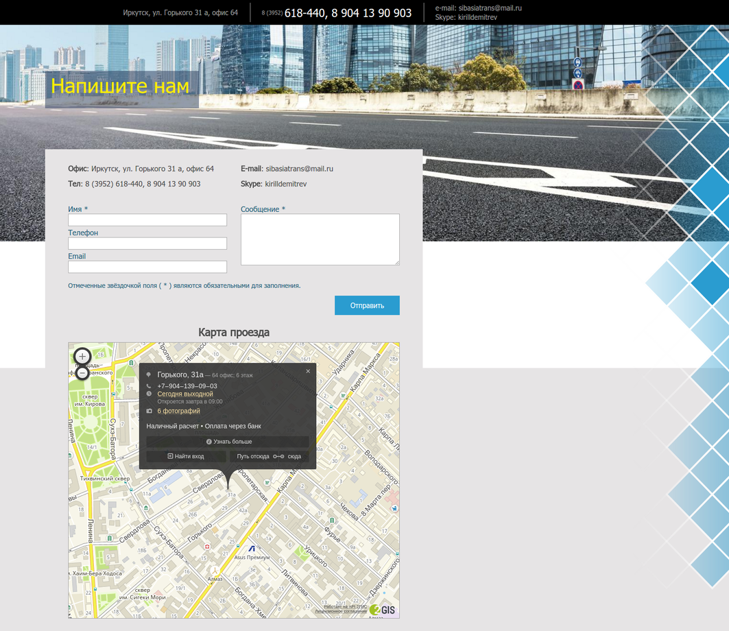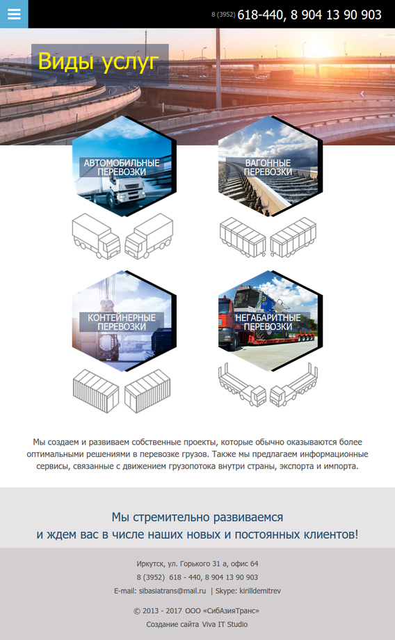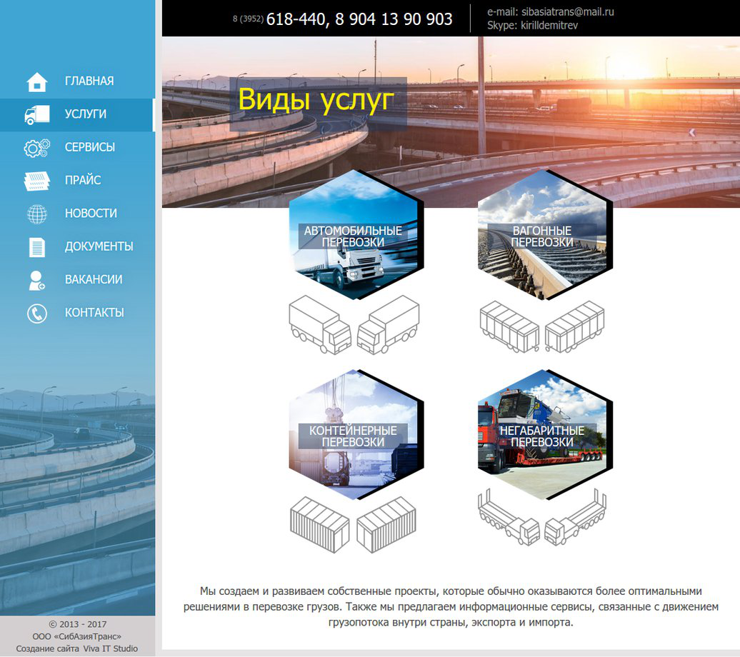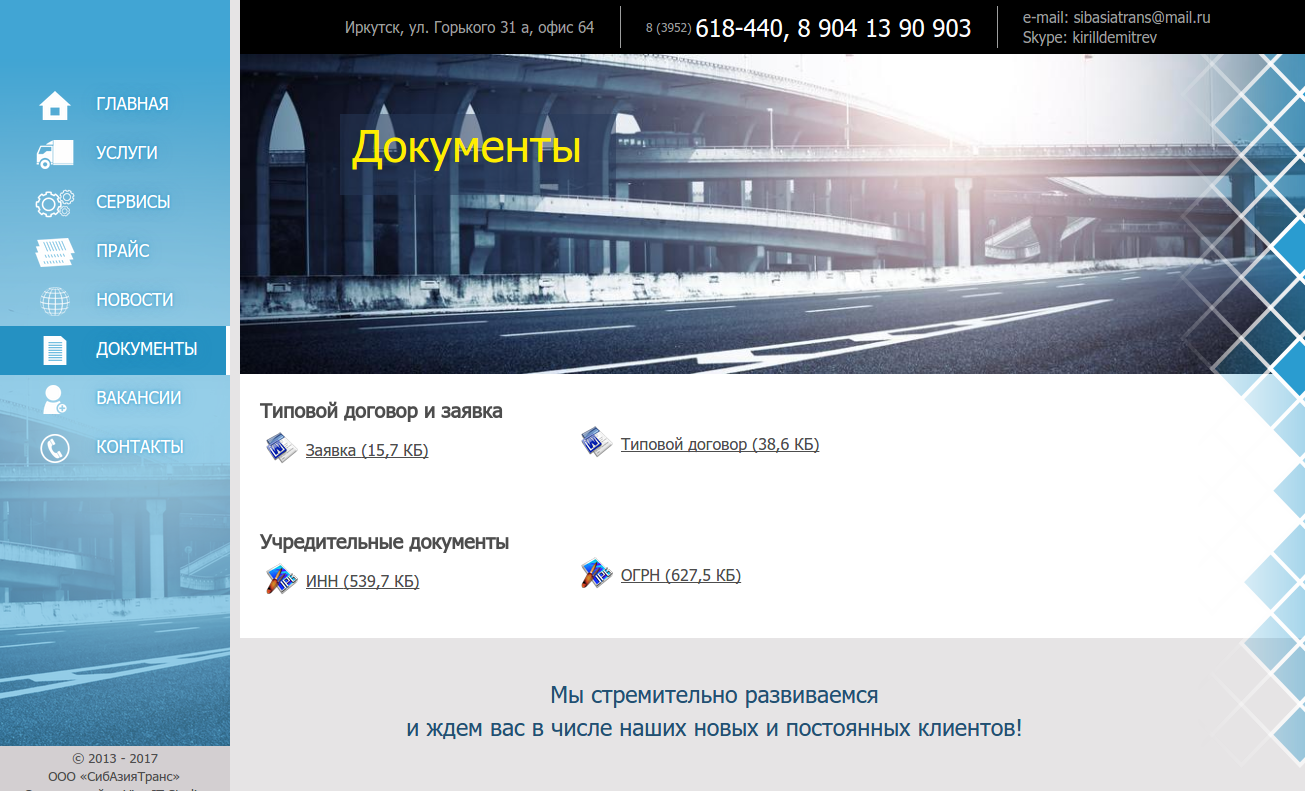 Молодая, динамично развивающаяся компания СибАзияТранс, занимающаяся автомобильными, контейнерными, вагонными и негабаритными перевозками, обратилась в нашу студию с заказом на обновление своего сайта. Ранее он был сделан на бесплатном движке и в нем нельзя было отключить рекламу этого самого движка. Сайт содержал пару страниц и минимальное количество информации о фирме СибАзияТранс.