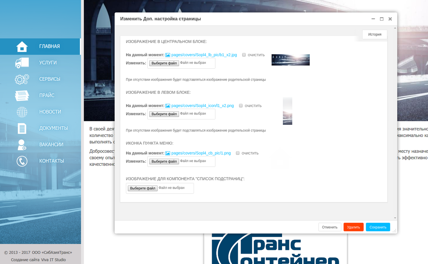 Представляем скриншот панели администрирования сайта СибАзияТранс: