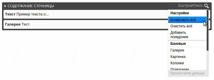 Также вы можете копировать целый контейнер с компонентами. Копирование и вставка контейнеров происходит аналогичным образом. Наведите мышкой на правый верхний край контейнера и выберите “Копировать всё”.