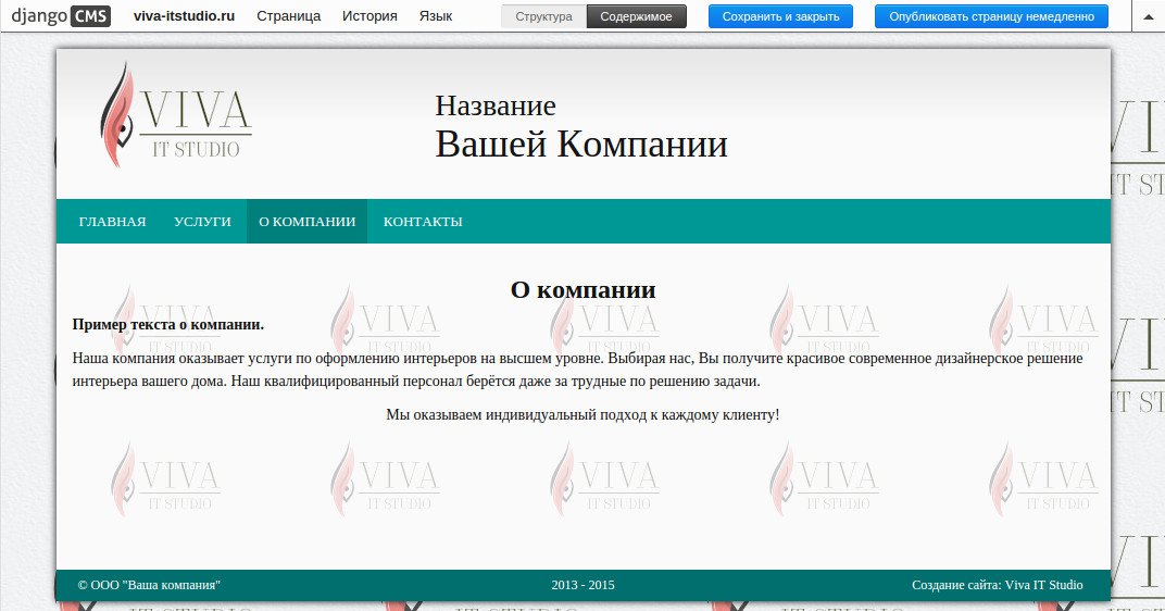 Руководство по Django CMS написано сотрудниками веб-студии Viva IT Studio.
