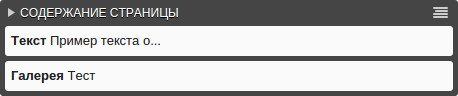 Кнопка “Структура” переключает страницу в режим редактирования содержимого. В структуре страницы добавляется содержимое на сайт в виде текста, картинок, ссылок, файлов и т.д.