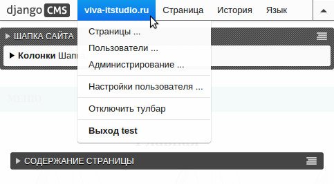 - “django CMS” - это название используемой CMS. По клику на неё вы сможете переместиться на главную страницу сайта.