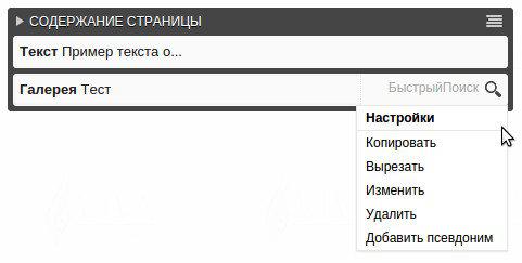 Меню представляет собой панель инструментов, позволяющих легко и просто редактировать содержимое каждой страницы.