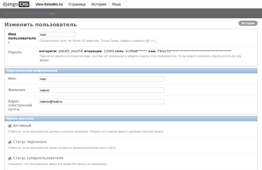 Руководство пользователя в текстовом варианте и формате видео вы можете найти на странице http://vits.pro/info/django-cms/